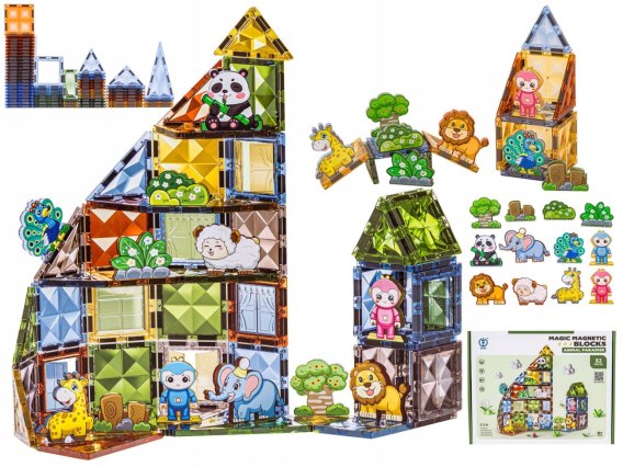 Klocki Konstrukcyjne Magnetyczne 82el. Zwierzęta Figury Budowlane