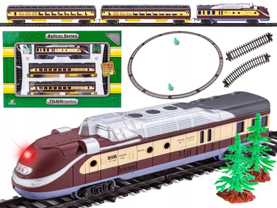 Kolejka Kolej Elektryczna Pociąg Pasażerski z Lokomotywa 2 Wagony Drzewka