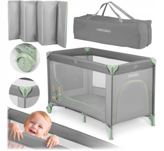 Dzięki praktycznemu pokrowcowi, łóżeczko zajmuje niewiele miejsca w przechowywaniu, a jego transport jest znacznie łatwiejszy.