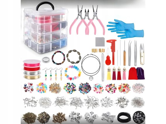 Mega duży kreatywny zestaw umożliwiający tworzenie swojej własnej, unikatowej biżuterii. Bransoletki, naszyjniki, kolczyki - ich tworzenie to świetny pomysł na twórczą zabawę - skutecznie zajmują na wiele długich godzin i wyzwalają absolutny wulkan kreatywnych pomysłów! W zestawie znajdziemy wszystko co niezbędne aby rozpocząć przygodę z tym wciągającym hobby.